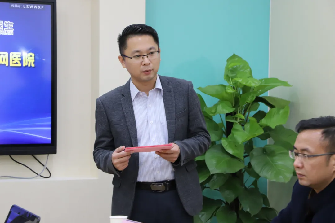本次会议由营销总监苏滨主持,苏总首先对远道而来的董泽秋董事长,以及本次签约合作的牵线人——万耀华董事长表示热烈的欢迎,并介绍了莅临此次签约仪式的各位领导。他还谈到,在新冠肺炎疫情防控中,互联网医院在应对疫情、满足人民群众就医需求等方面发挥了重要作用,展示了互联网赋能卫生健康事业的广阔前景。特别是互联网医院正如雨后春笋般建立和发展,推动互联网与医疗健康服务融合,为健康产业发展带来了新机遇。