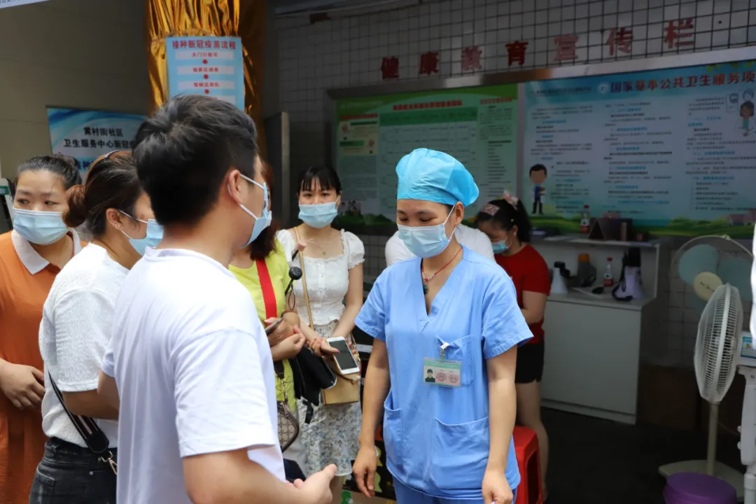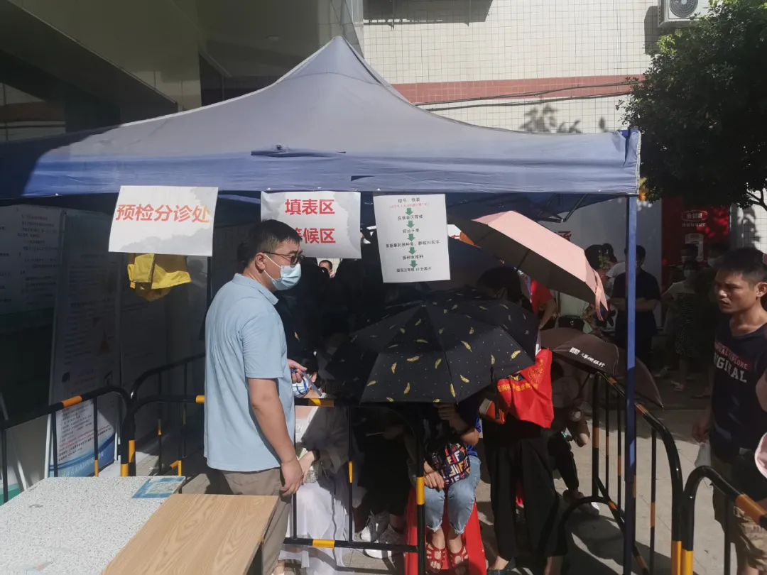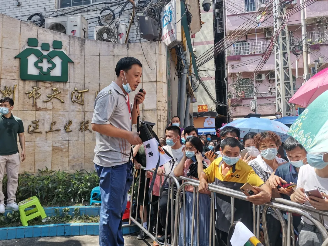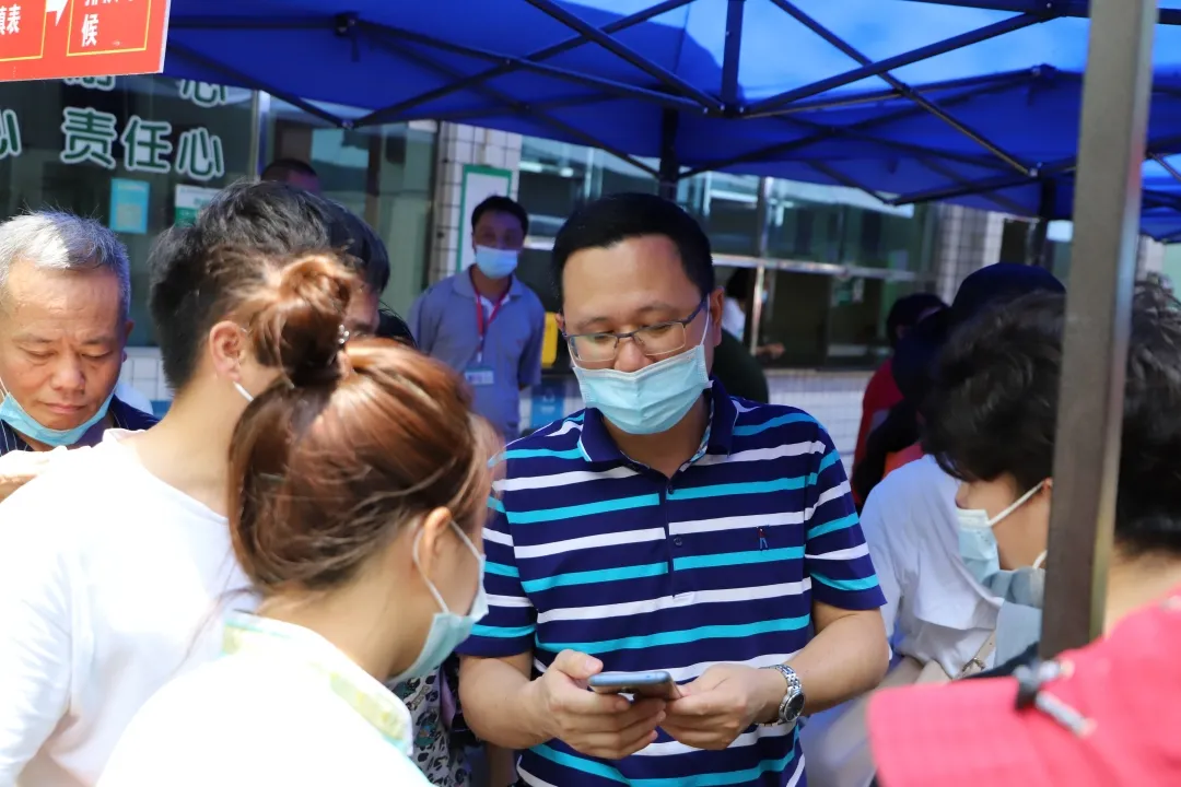 在特殊时期,各机构的人力紧缺,这也就意味着在岗位上的人员要一个人当两个人用,下班时间当上班时间用,各科室纷纷调配医护人员支援预防保健科室,举全单位之力,确保接种工作顺利完成。可以看到,黄村中心主任许盛海、副主任王少春,员村中心主任王海峰、副主任陈经伟,珠吉中心主任刘保立,还在休产假的华颖站站长杨小惠等机构领导极为重视疫苗接种工作,每天亲自在现场指挥。暴晒之下,汗流浃背是常有的事,我们肉眼可见,机构领导们都被晒黑了好几度,因为经常大声指挥,喉咙也基本都是沙哑的。