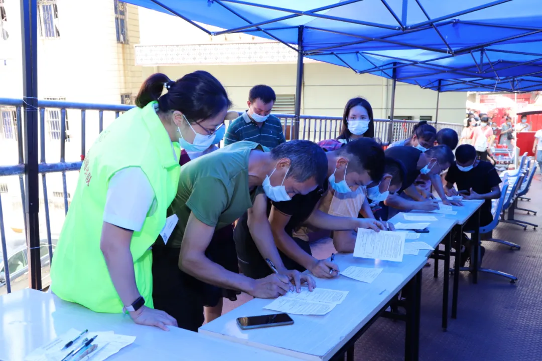 我们可以看到,接种登记人员一遍遍询问居民情况,喉咙沙哑,一口水都没办法好好喝,依然没有停止服务;接种护士动作重复无数次,手和肩膀发酸,屁股一坐就是几个小时,依然没有抱怨;医疗机构人手不够,各科室医生当起了现场疏导员,指导登记,疏通队伍,上厕所也变得奢侈,依然奋战在一线;保安团队维护秩序,防止过度拥挤,暴晒数小时,依然坚守在自己的岗位不敢离开一刻;物资采购团队每日与多个部门对接,搬运、清点、处置医耗材,辗转奔波,没日没夜,依然保持最佳工作状态……