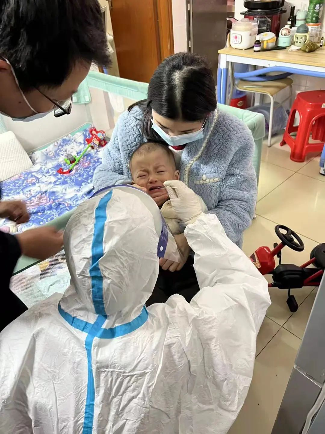 2022年4月9日起,天河区在员村街道部分区域划定封控区、管控区、防范区。员村中心儿保医生、党员刘郁芳此前预约了宝妈为新生儿检测黄疸,没想到遇到了疫情,封控区内进出都受到了限制。但新生儿黄疸监测工作是不能推迟的,刘郁芳医生逆行而上,进入封控区。刘医生穿着密闭的防护服走了一大段路,还爬了数层的楼梯,呼吸都不顺畅了,她说,“为新生儿的健康保驾护航是我的本职工作,特殊时期,作为党员和医护人员,我更应该承担更多职责。我们员村中心既保证防控要求,也不会忽视正常的居民就诊、保健!”