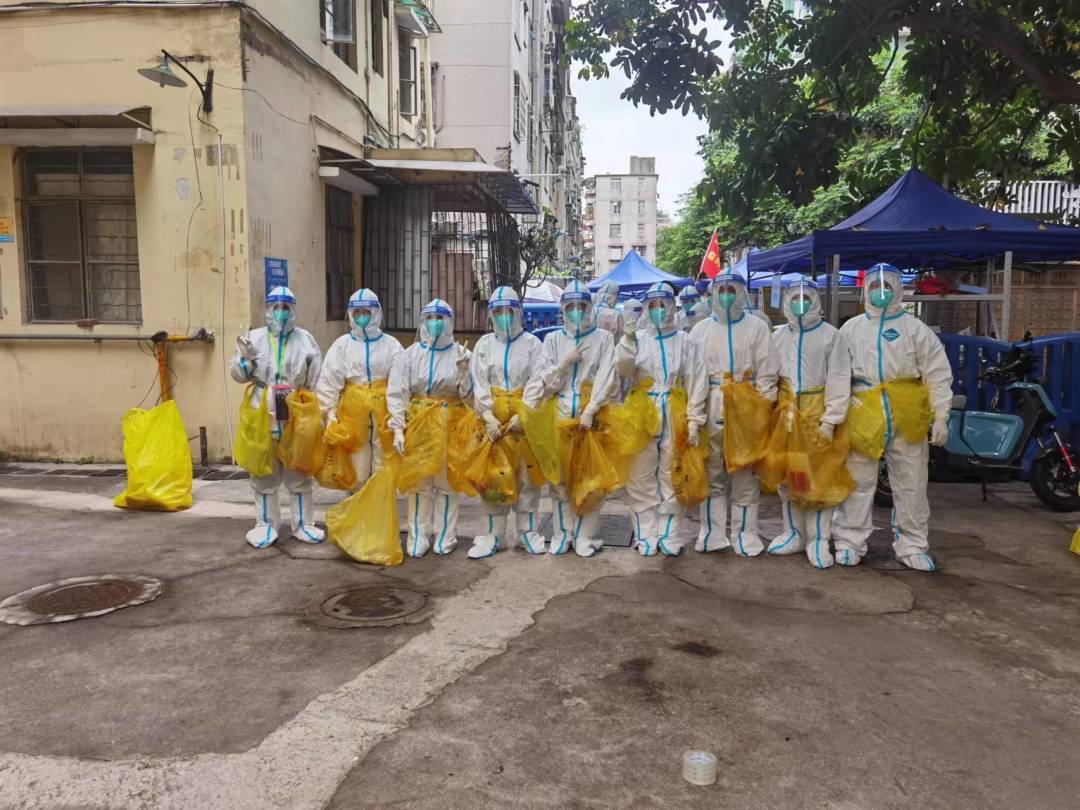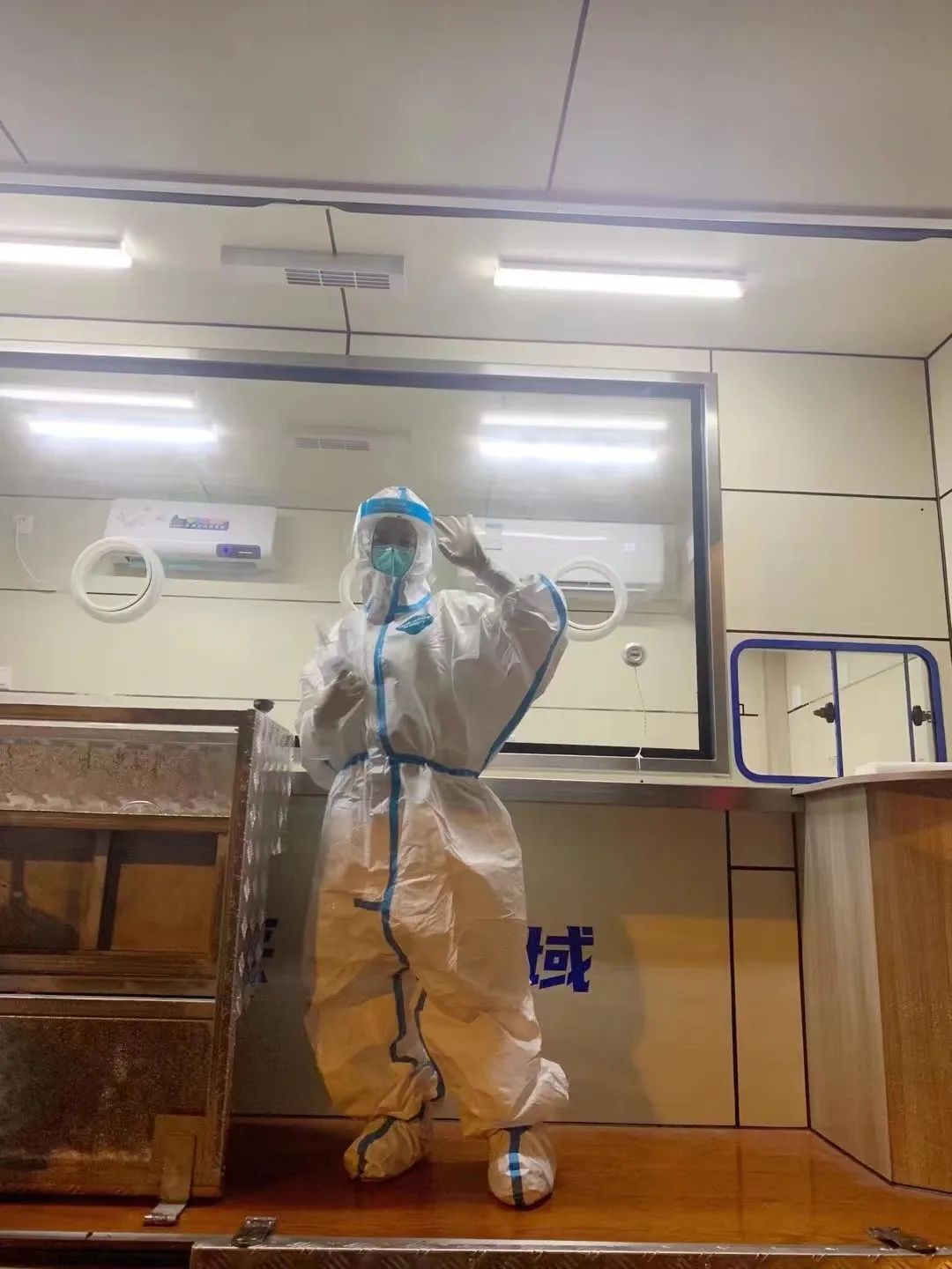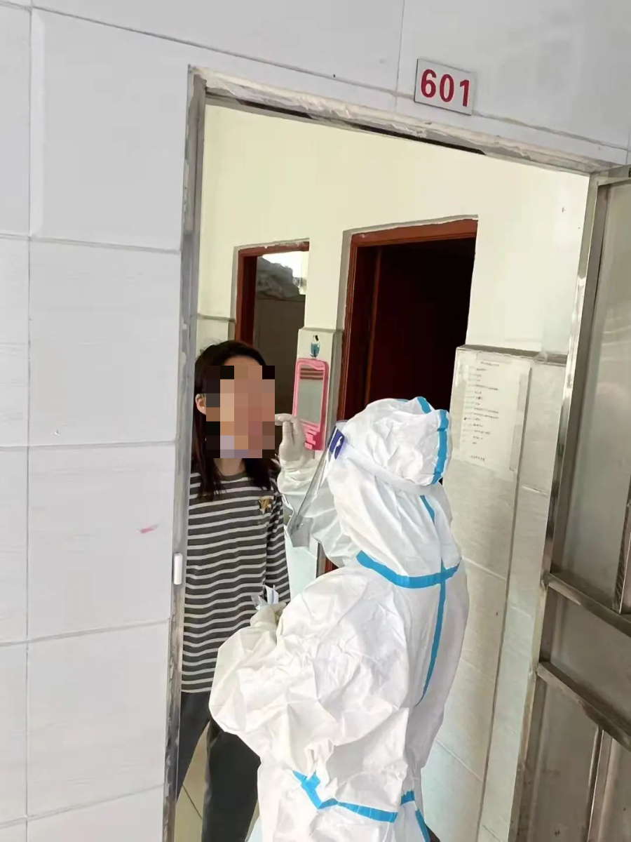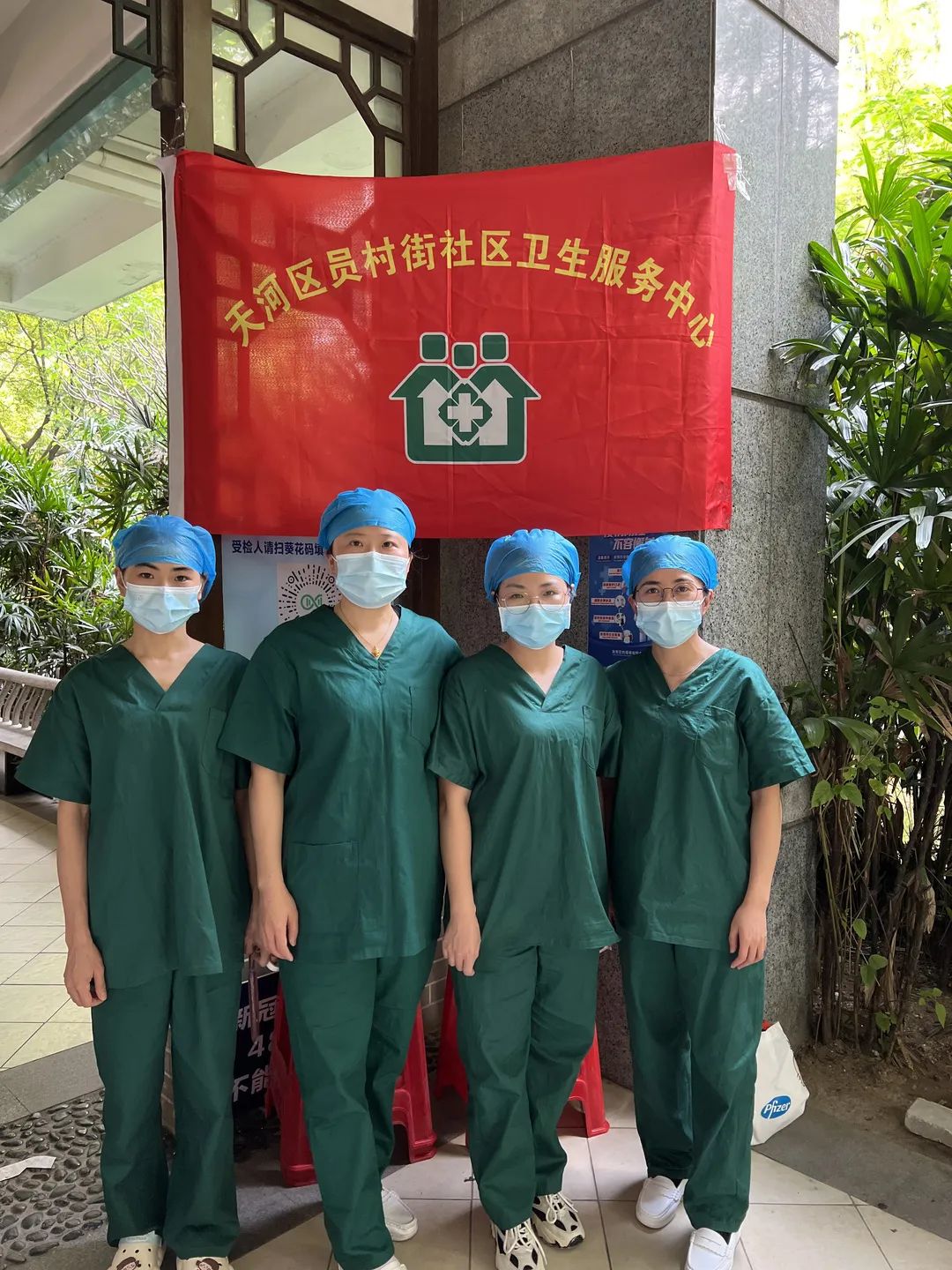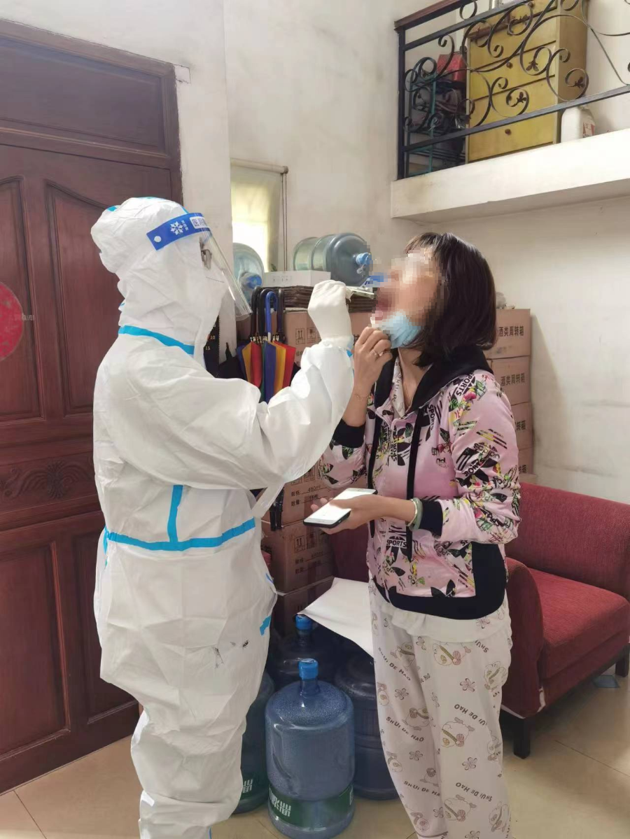 员村二横路11号大院小区24栋、25栋是本轮疫情封控区域,封控区内人员实行名单管理,严格落实居家隔离措施,赋红码、黄码的人群众多。对于员村中心来说,防控任务重大而紧急。员村中心药房的何际花积极响应单位号召,除了紧急支援核酸检测,她不畏艰险,不惧病毒,作为“三人小组”的一员,穿梭在员村街道防范区甚至是封控区,履行好居家隔离人员入户监测任务。员村很多老小区都是没有电梯的,她与同事们有时一个上午就要入户监测10多家,穿着防护服爬上爬下,虽然疲惫闷热,腿脚发软,但是她依旧身影极速,任务必达,使命必达,最晚的一天工作到了凌晨4点。本轮疫情发生以来,她也心甘情愿值守夜班,随时听候上级部门和领导们的调遣。