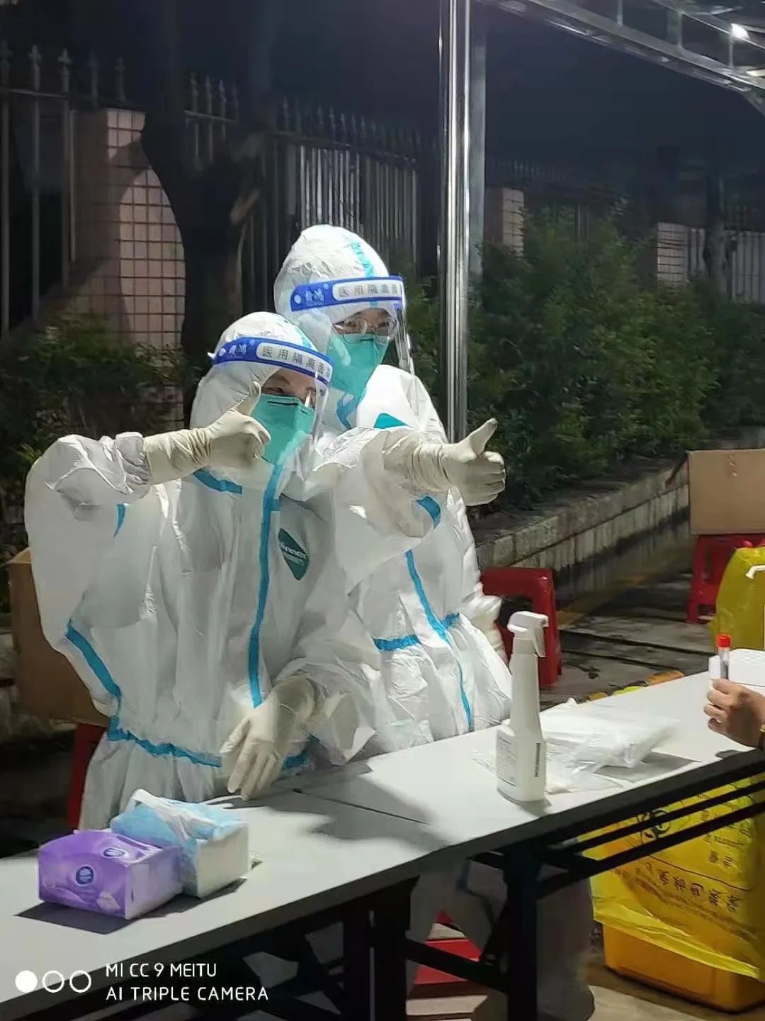 员村街先后两天内出现两例病例,两个封控区和管控区要管控,晚上大量密接、高风险次密需要转集中隔离,低风险次密需要居家隔离。这也意味着员村中心和华颖站面临着巨大的防控任务。华颖站的传染病专干冯少银扛起重任,四天以来,除了华颖站辖区6个居委防控任务,华颖站还协助员村中心转运100多名密接、次密。冯少银与员村中心黄大林医生担负起流调、核实信息、协调转运车辆、安排人员采样等各项工作,其中4月8日连夜转运70多个密接,9日晚上又转运50多位密接、次密,10、11日晚上依然在高速运转,冯少银自己也亲自转运了30多位密接,他说:“我和员村中心黄大林医生连续四个晚上几乎都是通宵,白天也就休息一个半小时,在特殊时期这是我们医护人员该做的,我们没有怨言。华颖站的全体成员都很给力,居委会也给了我们很多的支持,我们会继续战斗!”